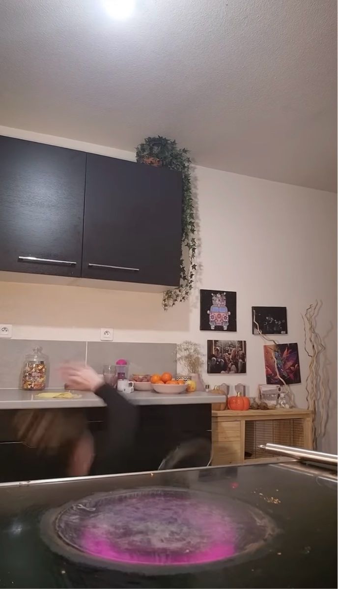 フランスのお宅で撮影された今回の動画には、クレープを作る女性の姿が収められていました。