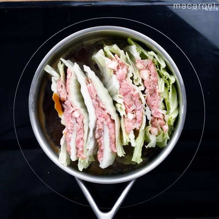 白菜がはがれないよう、しっかり押さえるように挟んでください。