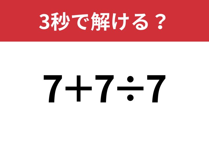 油断してると間違えるかも!?「7+7÷7」3秒で解ける?