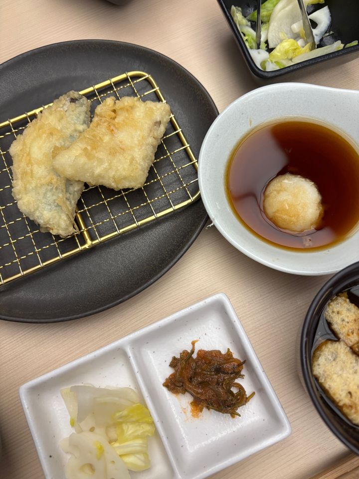 定食メニューでは、揚げたての天ぷらを揚げた順番からテーブルに持ってきてくれます✨