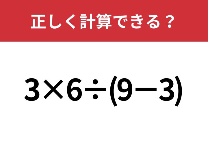 大人でも解けない人が多いかも!?「3×6÷(9−3)」正しく計算できる?