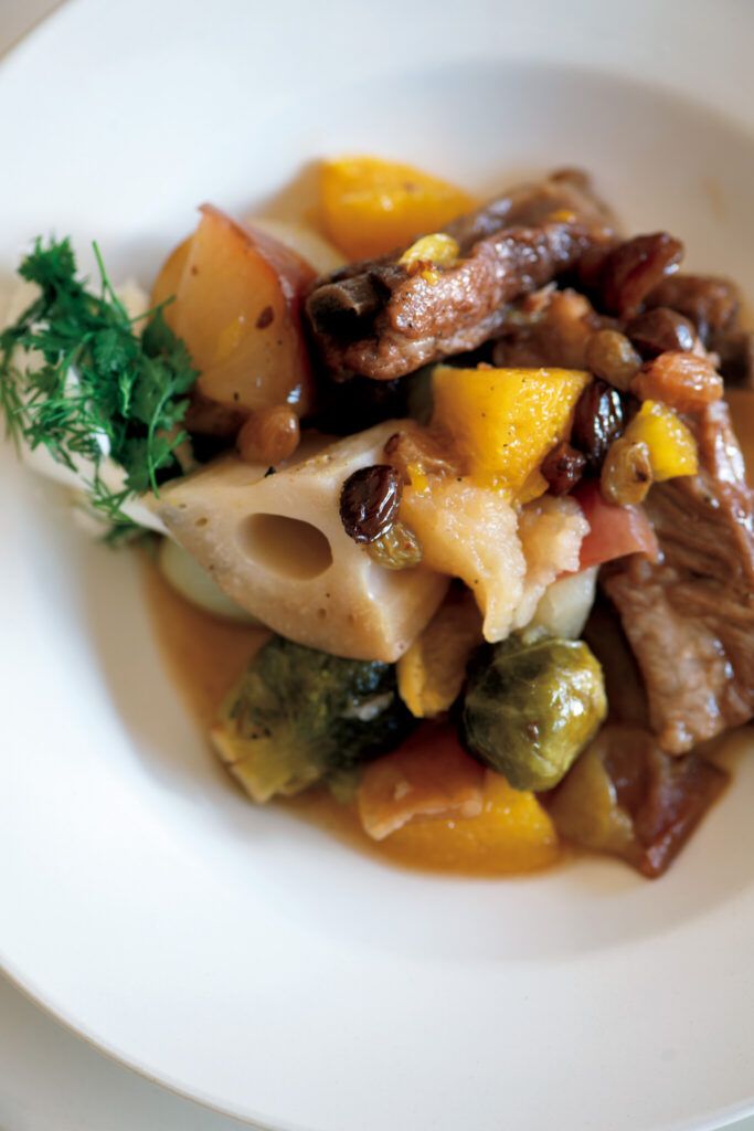 旬の冬野菜や果物を使って、しっとり冬らしい前菜と煮込み料理を作ります。