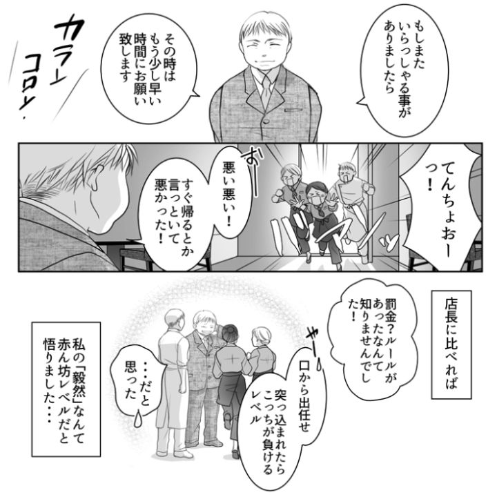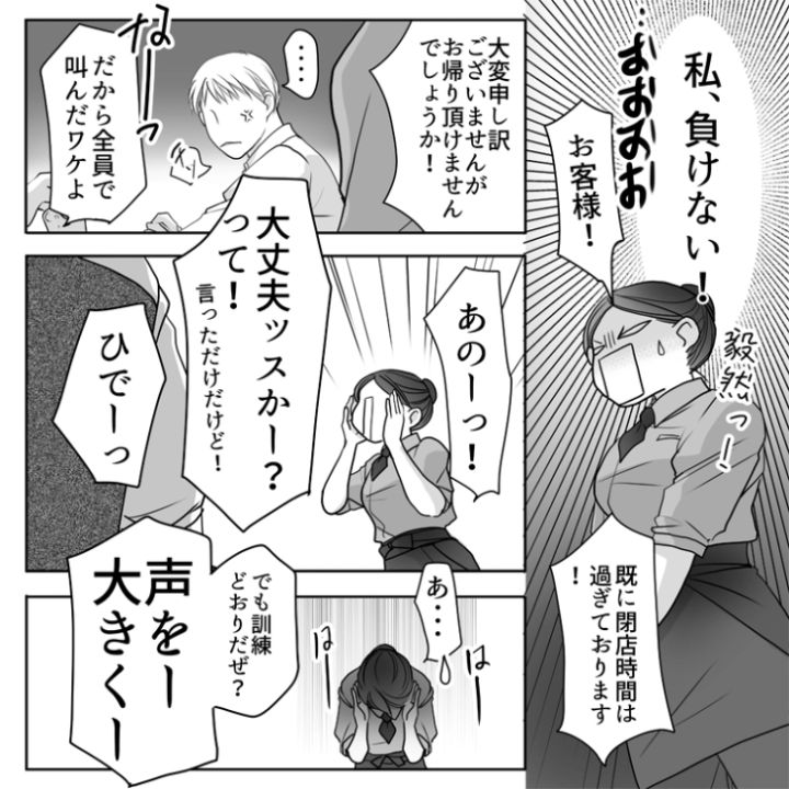 店長が機転を効かせた嘘をついてやっと追い出せたのをみて、自分の毅然とした対応なんてまだまだなんだと思った主人公でした。