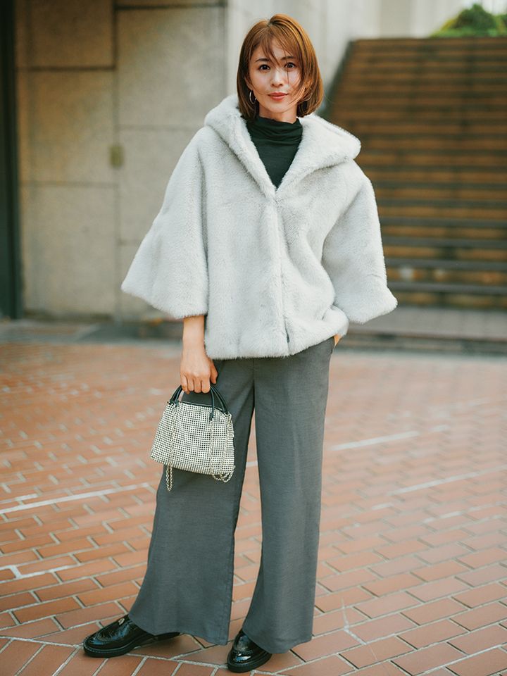 3.トレンド感たっぷりな「エコファーポンチョ」