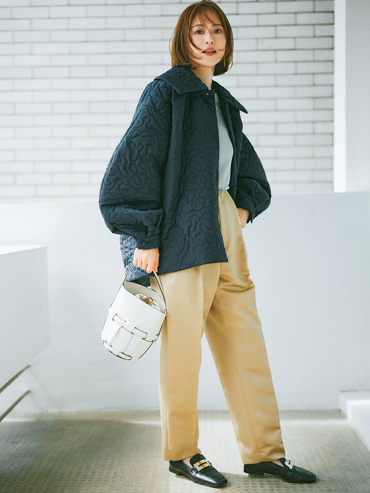 スーパーへ自転車で買い出し、車で塾送迎など多スクな私たちには、フッ軽に動ける軽アウターは必需品。ベーシックすぎない大人なキルティングジャケットです。