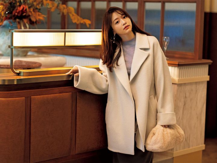 冬の肌見せニットには厚めのコートを羽織って防寒対策もしっかりと。重たいコートの下は彼をときめかせる最大限のおしゃれを潜ませて♪