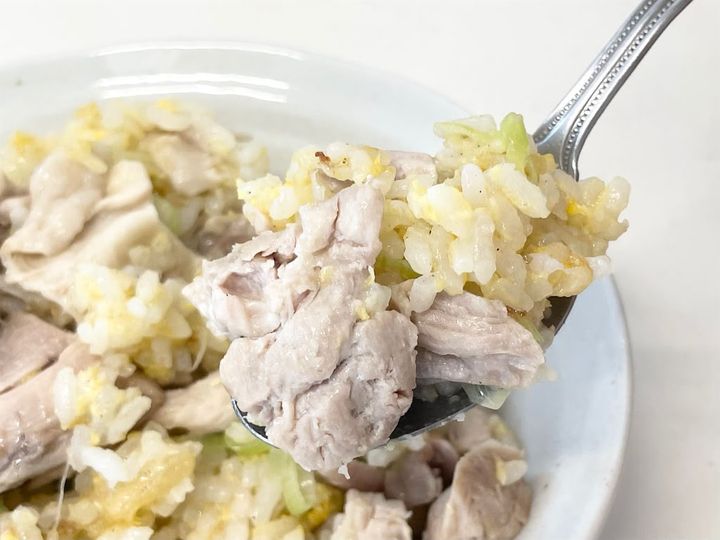 3. ゴロゴロ鶏肉がしっとり旨い♡鶏の茹で汁を吸った米と卵、ゴマ油で炒めた「茹で鶏焼き飯」が絶品な話