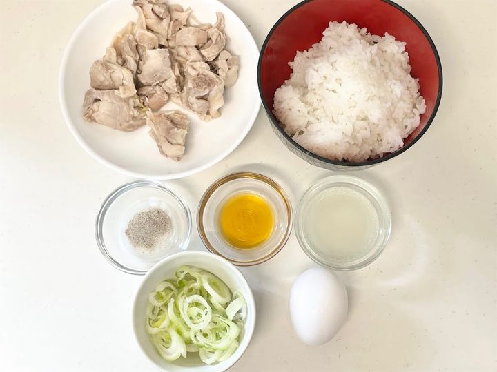 突然ですが、炒飯と焼き飯の違いってご存じですか?調べてみると、卵を先に炒めた後、ご飯と具を炒めるのが「炒飯」。ご飯と具を炒めた後、最後に卵を入れて仕上げるのが「焼き飯」だそう。な・ん・で・す・が…今日のこちらの焼き飯は、ご飯に生卵を入れて混ぜ合わせてから炒め合わせています。これは、焼き飯なんでしょうか、炒飯なんでしょうか…は、さておき、こうするとお米ひと粒ひと粒がコーティングされてパラパラに仕上がるんですって。ではさっそく、ゴロゴロ鶏肉とパラパラご飯の「茹で鶏焼き飯」を作ってみましょう♪