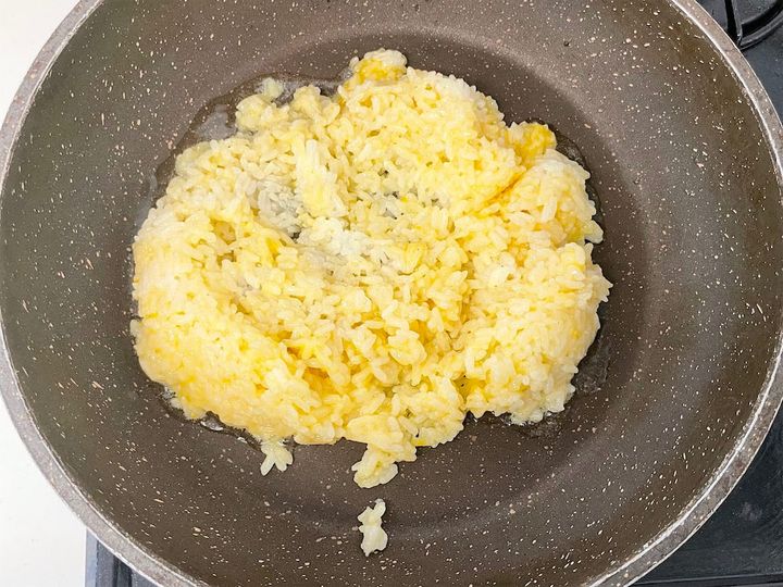 ご飯は炒める前に卵と混ぜ合わせたことで、米に卵がコーティングされてパラパラです♪