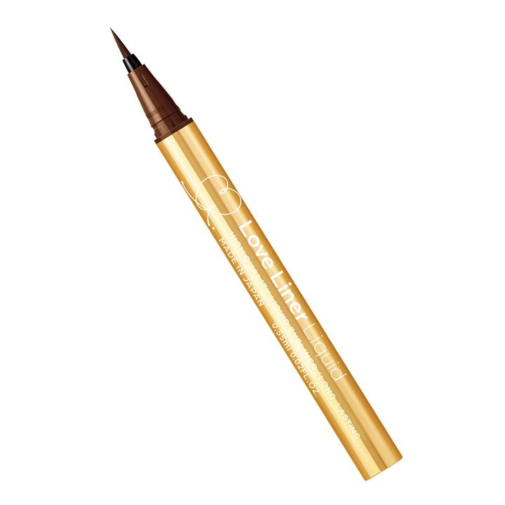 【ラブ・ライナー リキッドアイライナーR4】目頭からまつ毛の隙間を埋めるように塗って、目力をアップさせています。自然な華やかさを際立たせる赤み系ブラウンを使用。¥1,760(msh)