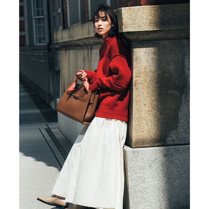 【タートル×ニット】の同色レイヤードで防寒オシャレ!トレンドの赤で血色感UP