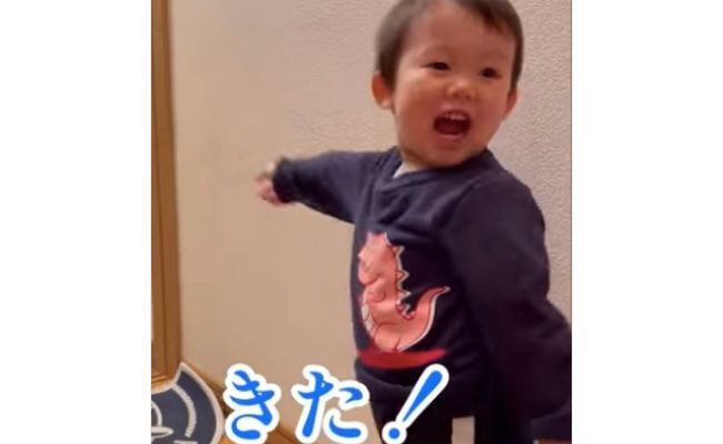 そろそろパパが帰宅する頃。男の子は「パパ早く帰ってこないかな?」と嬉しそうに玄関で待ち構えていますよ?なんでワクワクしているかというと……?可愛いすぎる理由にキュン♡