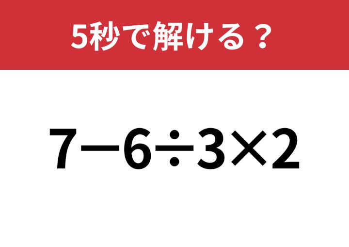 大人なら正解できないと恥ずかしい!?「7−6÷3×2」5秒で解ける?