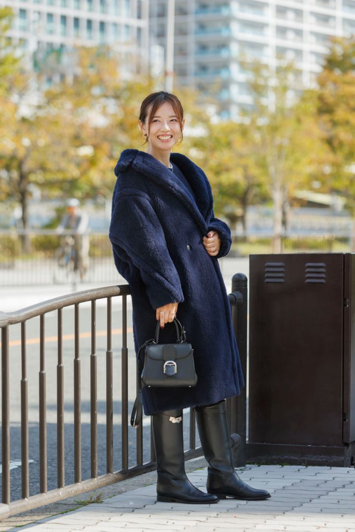 earrings/Cartier ring/Cartier(右手人差し指)、Van Cleef &Arpels・HARRY WINSTON(右手薬指)、BOUCHERON(左手薬指) watch/ROLEX coat/Max Mara tops/BLAMINK pants/UNIQLO bag/DELVAUX boots/HERMÈS