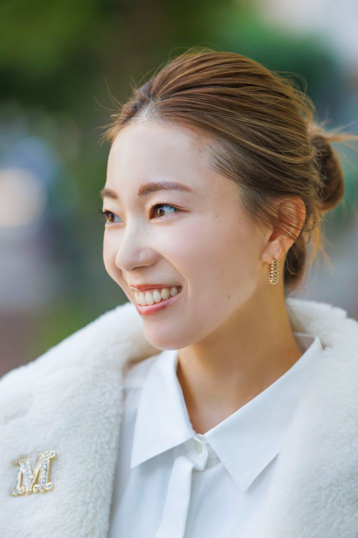 「今年の夏に買ったクラッシュのピアスは合わせやすいデザインがお気に入り。あえてスウェットやデニムのカジュアルコーデに合わせるバランスが好きで、リングとセットでつけることが多いです。コートのボリュームにも負けず、ポイントになってくれます」行村須津菜さん・37歳(165㎝ 6歳の女の子ママ)