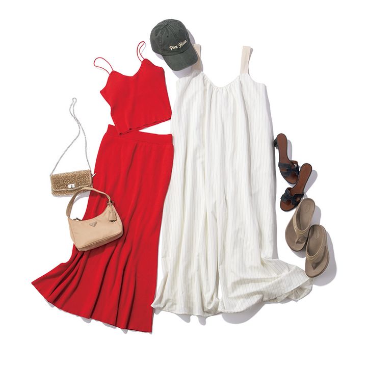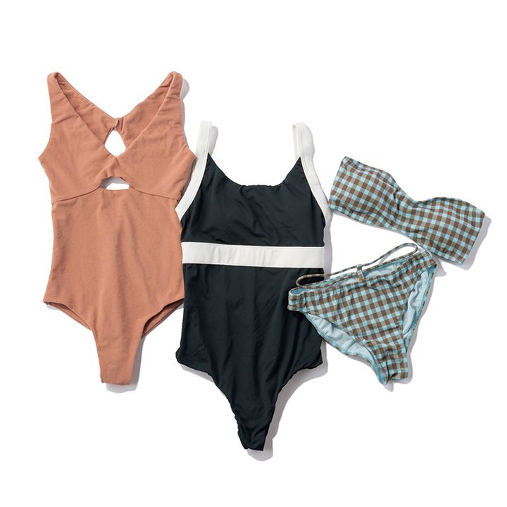 毎日プールや海に行くので、水着はバリエーション豊富に揃えておくのが鉄則。街中でデニムと合わせたときもテンションが上がるようなちょい派手ビキニや、水中で娘と思いっきり遊んでも安心のつなぎタイプも欠かせません。(左)eit swim(中央)ALEXIA STAM(右)SeaRoomlynn