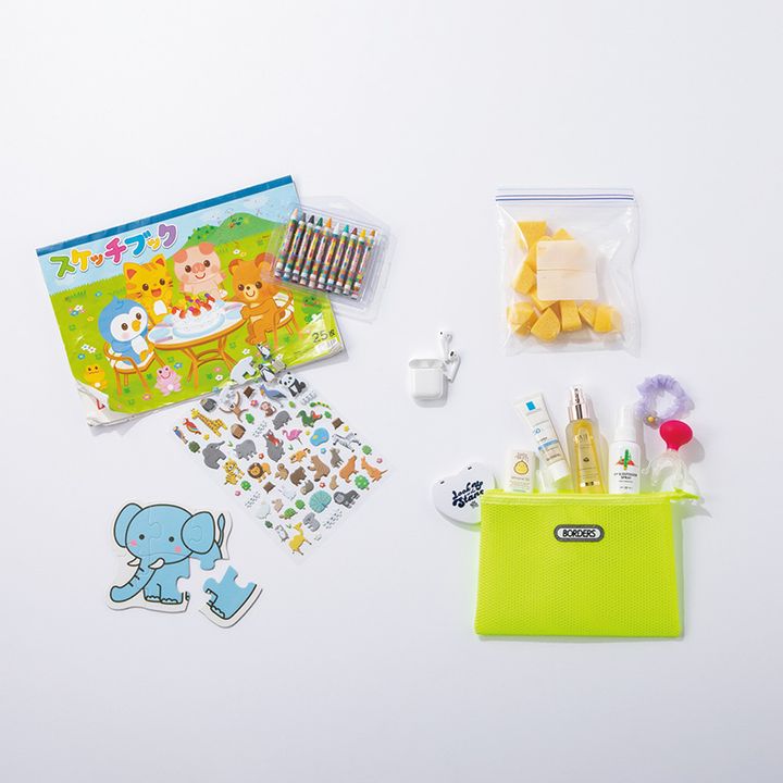 手持ちバッグの中はむくみや子どもの耳抜きなど気圧対策が中心