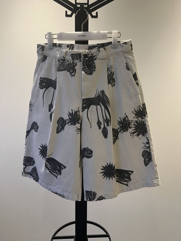 とにかくすべてにおいてこだわって作られていて、とくにテキスタイルが秀逸。今回ピックしたショートパンツのプリントには墨が使われており、余白部分との絶妙なバランスも相まって、総柄ながら大人っぽい雰囲気で着こなせるんです。あと、折った布や紙をモチーフにした太めのベルトループなど、オリジナリティあふれるディテールも心に刺さりまくりました!
