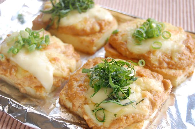 ちなみに、豆腐をトースターで焼く際、チーズを増やしたくて、ピザ用チーズの上にとけるタイプのスライスチーズをちぎって少しのせました(分量外)。チーズはたっぷりの方がおいしいですよね。