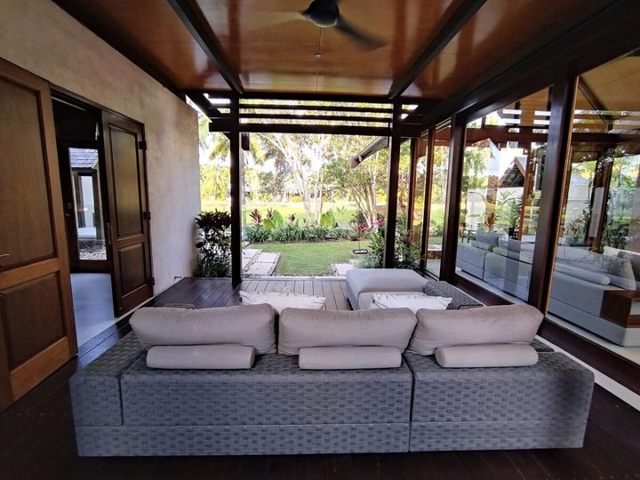 ゆったりとしたソファが配されたオープンエアのラウンジが現れます。ヴィラの広さは、なんと約250平方メートル。1番小さな「1ベッドルームヴィラ」でも130平方メートルもあるのだとか。