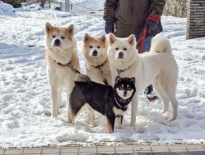 ちなみに、手前にいる黒柴が一番年上とのこと。 それを知ると、構図的に3匹の秋田犬を従えるリーダーにも見えてきます。