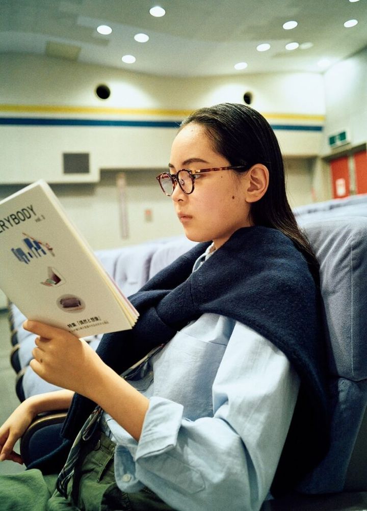 映画のパンフレットを読むと、製作の背景を知ることができて、作品をより深く楽しめる。〈テン アイヴァン〉のメガネも、ディテールへのこだわりに気づくたび、愛着が増す仕上がり。貝を削り出したシェルパッドや、独自に作られたトルクスネジなどから、真摯なものづくりの姿勢が伝わってくる。重厚感のあるべっ甲柄のフレームは、丸みのあるボストンシェイプが顔全体の印象を柔らかい雰囲気に。¥93,500(コンティニュエ 03‒3792‒8978) シャツは2、パンツ、肩にかけたニットはp.13で紹介。その他スタイリスト私物