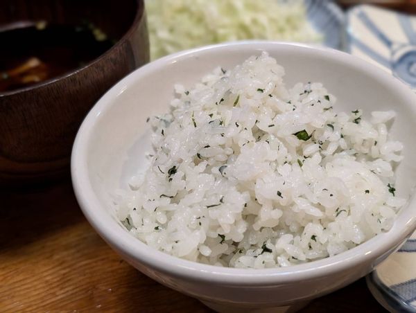 実は、この「かつ吉」のしそご飯をはじめて食べた時から、このしそご飯の大ファンで、夏にしその苗を買ってきてプランターでモリモリ栽培しては、みじん切りにして塩もみをして、オリジナルしそご飯を作って食べているほど。