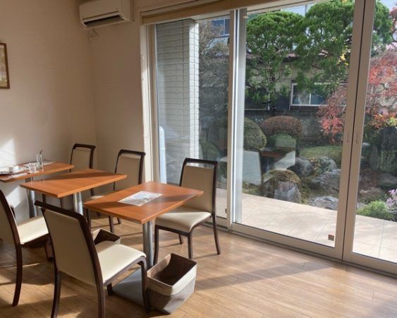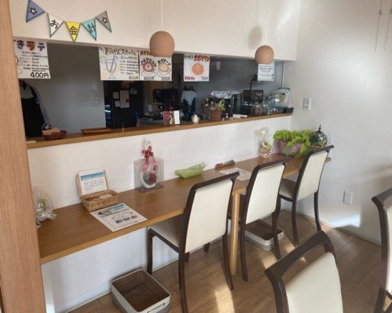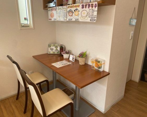 店内は大きな窓があり、暖かな日差しが降り注いできます。テーブル席とカウンター席があり、お友達と来ても一人で来ても居心地の良さを感じられると思います。白を基調としていてシンプルな雰囲気ですが、お花の置物からも暖かさを感じますね。