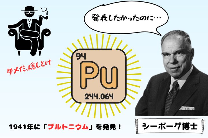 シーボーグは「世紀の発見だ!」として科学論文に発表しようとしたのですが、アメリカの上層部から「いや、プルトニウムのことは内密にしておこう」と秘匿されます。