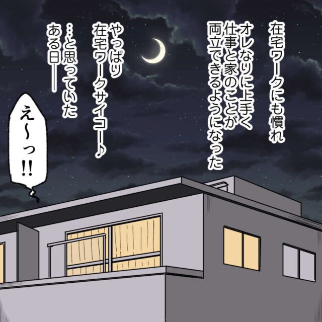 その後、在宅ワークにもすっかり慣れたオレ、「自分なりに上手く仕事と家のことが両立できるようになった」「やっぱり在宅ワークサイコー!」と思っていたある日。「えーっ!!」と驚くママの声が。