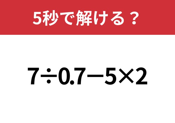 正しく計算できる人はかなり少ないかも!?「7÷0.7−5×2」5秒で解ける?