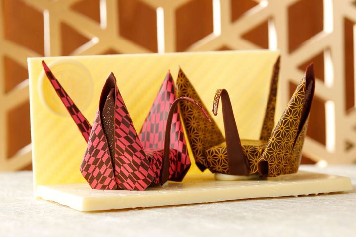 「夫婦折り鶴チョコ」4200円は、年号が変わることを機に“飛び立つ”という想いをこめて作られた「折り鶴チョコ」。チョコとは思えない繊細な造形に心惹かれます。飾りたくなる美しさで、お祝いのシーンや手みやげにおすすめです。