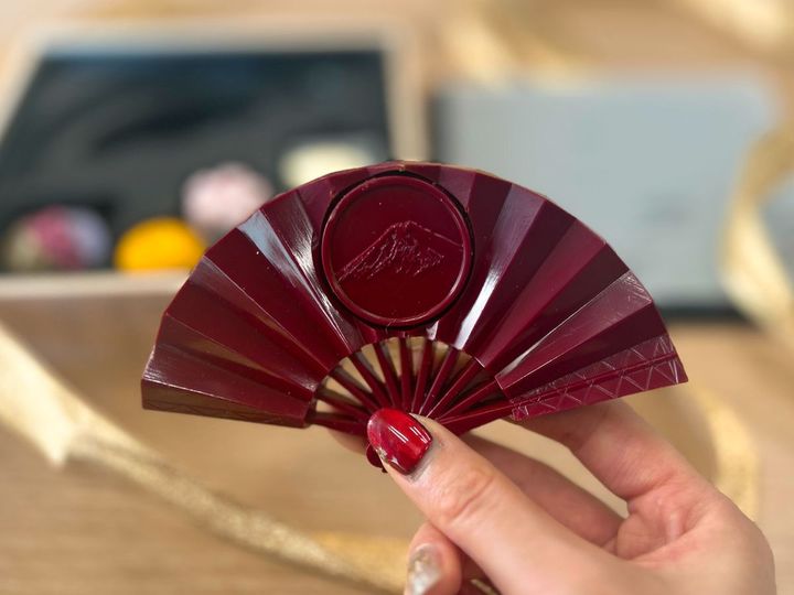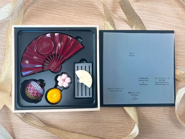 箱を開けるとまず目を惹くのは、ホテル内を彩る日本画や美術工芸品に多く取り入れられているモチーフの一つ・扇のチョコレートです。