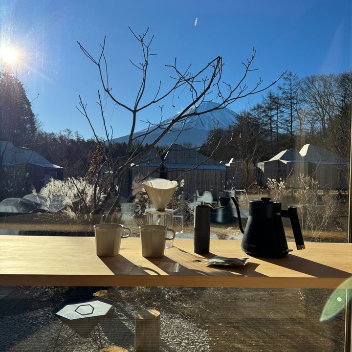 出典:MORE朝起きたらコーヒーと富士山☕️🗻コーヒー豆は有料ですが、お部屋にあるのでとても便利☕️朝からこの景色をみながらいただくコーヒーは格別