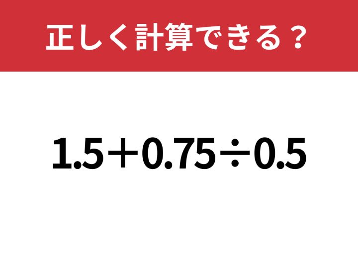 3. 小数の計算ってかなり難しい!?「1.5+0.75÷0.5」正しく計算できる?