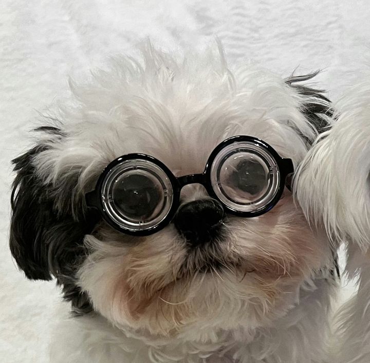 眼鏡をかけた愛犬が大変身