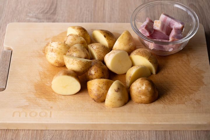 今回はじゃがいもとベーコンだけでできる、すぐできて簡単なローストポテトのレシピを紹介します!