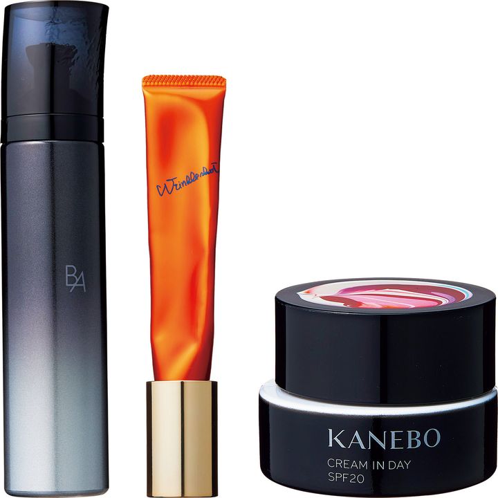ポーラ B.Aのミルク B.A フォームとリンクルショット、KANEBOの日中用クリームの3点セットでシワレスな弾力 肌になります。
