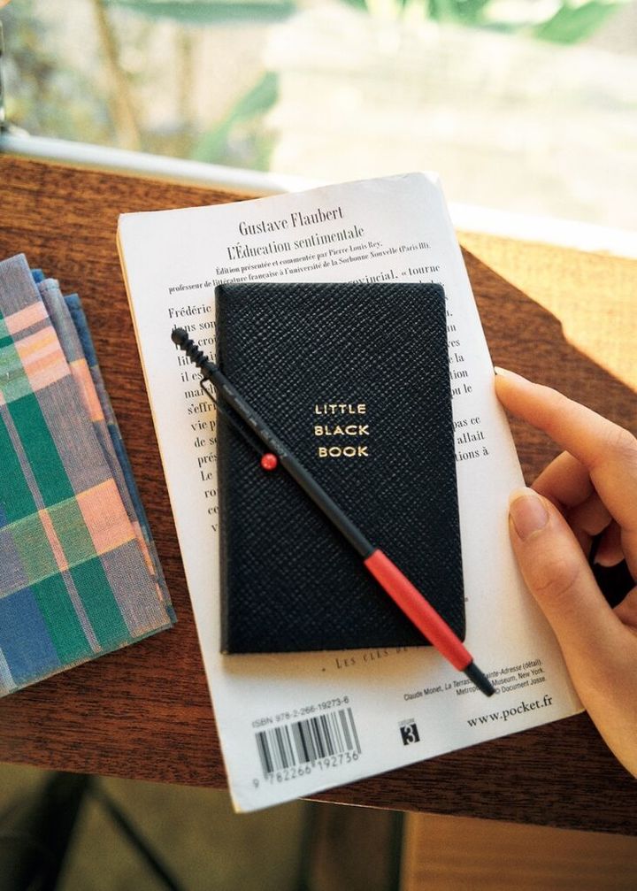 いつも肌身離さず持ち歩くペンは、収まりの良いサイズで見た目も気に入ったものを選びたい。鉛筆や消しゴムでおなじみの〈トンボ〉から1987年に登場したボールペン「ZOOM 707」は、機能美を追求した名作。約4mmの細いボディは真鍮製だから安心の強度で、目を引く赤色のラバーグリップが握りやすい。クリップ部分の赤いボールも愛らしく、ノートに挟んだ姿が絵になる。フォーマルな場面でも様になる、シンプルかつ飽きのこないデザイン。¥2,200(パピエラボ 03‒5411‒1696)その他スタイリスト私物