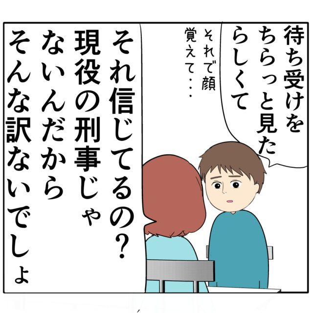 すると「待ち受けをちらっと見たらしくて。それで顔覚えて・・・」と平然と答えるろみ緒さん。めいさんは「それ信じてるの?現役の刑事じゃないんだから、そんな訳ないでしょ」と突っ込みます。