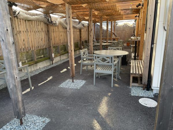 テラスも広く作られています。暖房やひざ掛けもあり、愛犬との来店も大歓迎だそう。