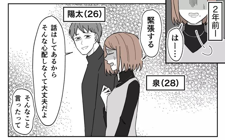 陽太と授かり婚した泉は、義実家に挨拶に行くと快く受け入れられ安心していました。陽太も育休を取ると張り切っていて、心強いと思っていましたが、上司の助言を聞き諦めたとのこと。陽太はできるだけ手伝うと言いましたが、口先ばかりで泉はワンオペ状態に。そのうち義父母も口先だけということがわかり…