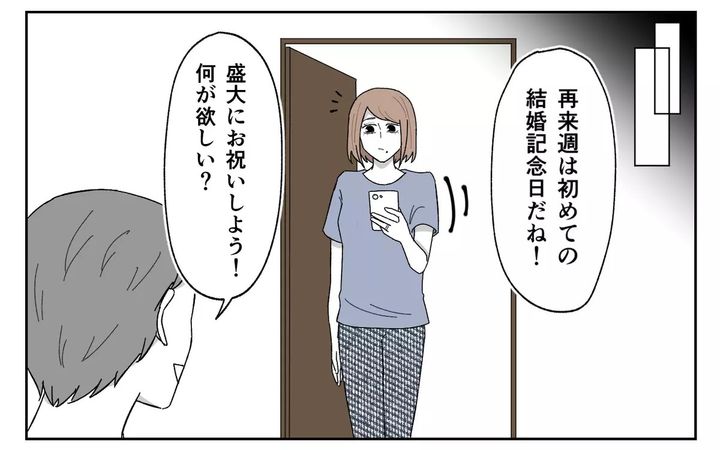 ・どれだけ仕事で疲れていても、テーブルの上のいつもと全く違うご馳走やワインを見ればさすがに記念日のこと思い出しますよね。上司の愚痴を吐きまくって夕食をバクバク食べれるくらいの元気はあって、おまけにケーキまで食い尽くして。この夫、なんかおかしくないですか?