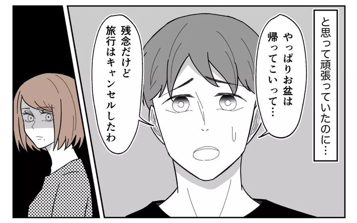 ・この夫、酷い。ウチもお盆・お正月は夫の実家に行くのが当然で、いつも気も身体も休まらずヘトヘトです。もし自分が実家に行かず、初めて旅行に行けると楽しみにしていたのに、やっぱり実家にって絶望だよ。この夫が最低なのは、自ら期待をもたせるだけもたせて、ドン底に突き落とすとこ。しかも相談なしの自分勝手の極み。自分の提案に責任を持て!