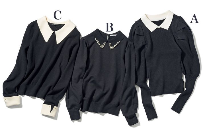 3. プリプラでも安っぽく見えない!「えり付きニット」はクラシカルなブラックで大人っぽく