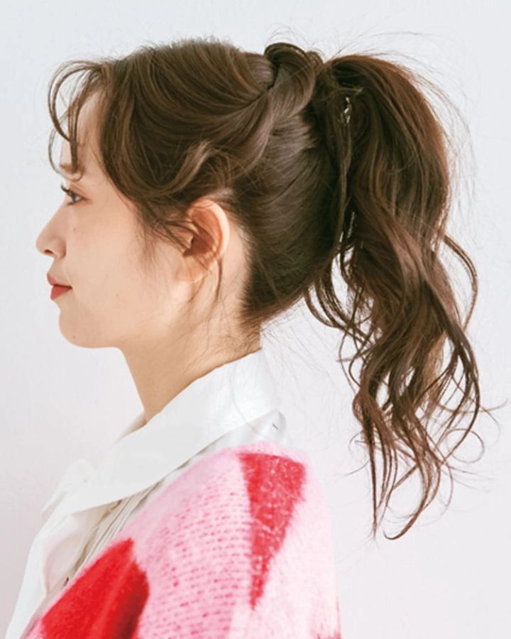 3. 【日向坂46・佐々木久美】派手柄ニットと相性抜群♡「ボリュームポニテ」の作り方