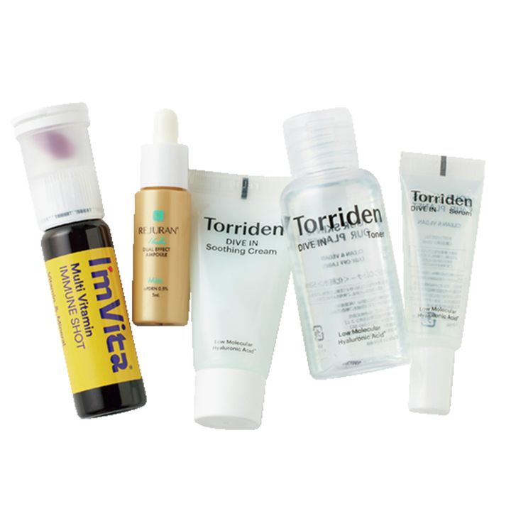 「セブンで買えるトリデンのトラベルキットにリジュランのアンプルをプラスするのが自分史上最強セット。NOトラブルな肌になれます!翌日が中継の日はI’m Vitaの飲むビタミンを。」
