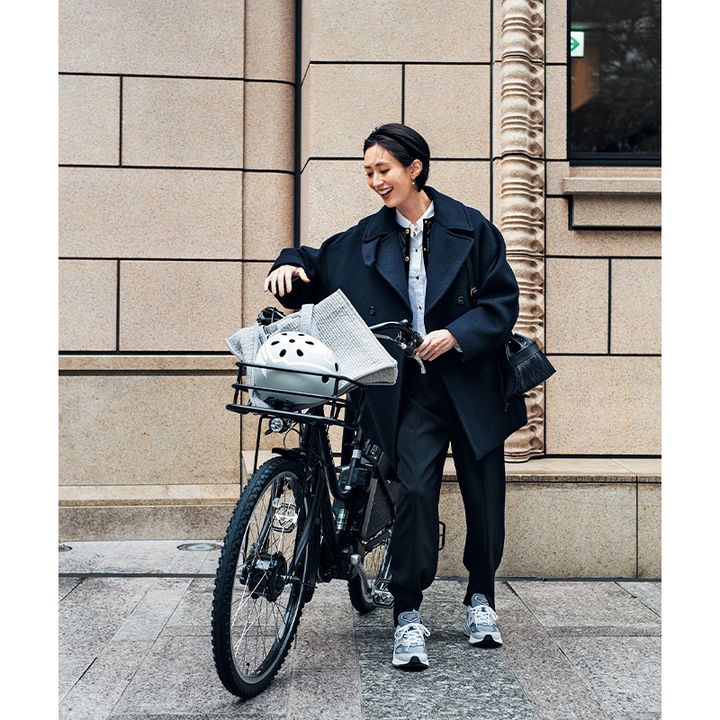シャツ¥27,500(ランバン オン ブルー/レリアン)ダウンベスト¥23,100(トラディショナル ウェザーウェア/トラディショナル ウェザーウェア ルミネ有楽町店)パンツ¥19,800(エレンディーク)コート¥64,900(TICCA)ピアス¥88,000(Hirotaka/ヒロタカ 表参道ヒルズ)カチューシャ¥17,600(アレクサンドル ドゥ パリ/アレクサンドル ドゥ パリ GINZA SIX店)バッグ¥126,500(J&M デヴィッドソン/J&M デヴィッドソン カスタマーセンター)トートバッグ¥31,460(pionunnal)スニーカー¥36,300(ニューバランス/ニューバランスジャパンお客様相談室)