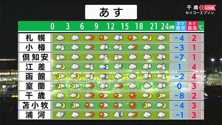 ・あすの札幌の朝昼晩の天気