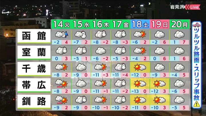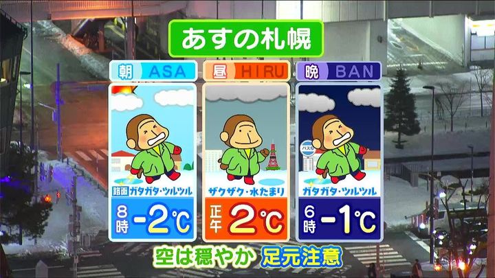 14日も札幌は晴れ間が出ますが、ツルツル路面に注意が必要ですね。